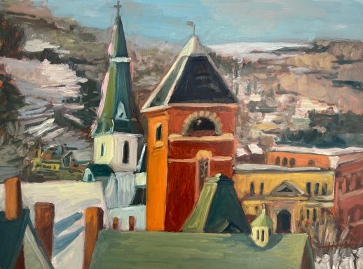 Many of these paintings were created during my residency at Studio Place Arts in Barre, Vermont. These structures offer a glimpse into our daily lives.